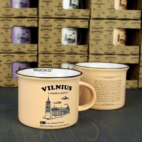 Rusvos spalvos puodelis Vilniaus Arkikatedra bazilika - Puikus Suvenyras.
