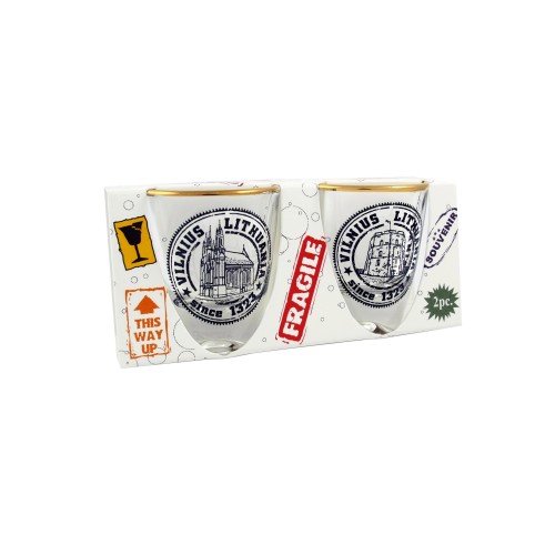 A set of short glasses of Vilnius. Glasses decorated with gold packed in original two glasses set.