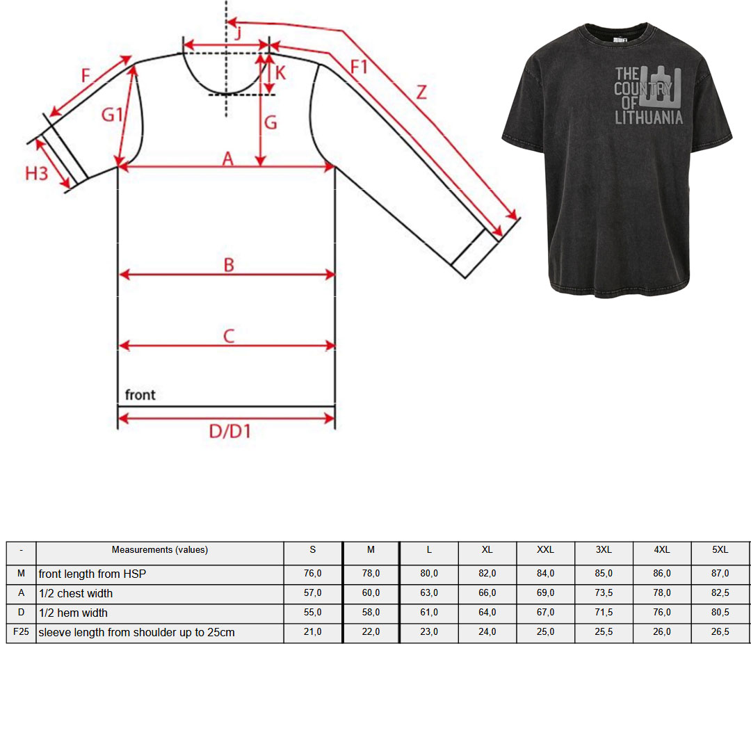 Oversize kirpimas suteikia visišką judėjimo laisvę ir laisvą, urbanistinį įvaizdį. Audinys malonus odai, o išskirtinė tekstūra ir minimalistinis spaudos dizainas pabrėžia šiuolaikišką lietuvišką identitetą.